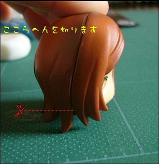 おかっぱにしたいのではねてるところをカッターで削っちゃいます。